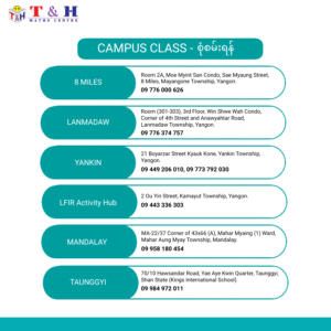 🎓 ကျောင်းသား၊ကျောင်းသူများသင်္ချာကိုလွယ်ကူစွာသင်ယူနိုင်ပြီးအောင်မြင်မှုတွေပိုမိုရရှိနိုင်ဖို့အတွက် T&H Maths Centre ကအမြဲအတူရှိနေပါမယ်ရှင်။
